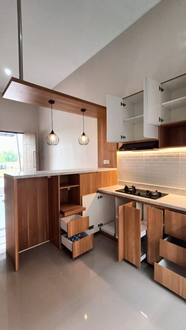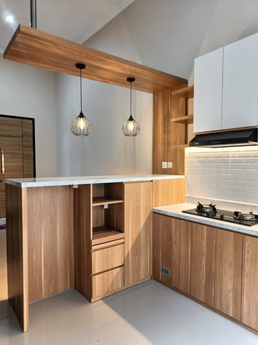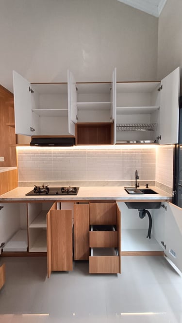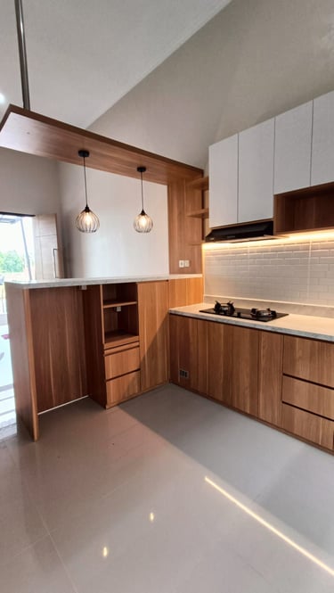 Salah satu proyek Kitchen Set. Menggunakan bahan berkualitas tinggi. Kami Tidak hanya menawarkan hasil estetika tetapi juga fungsional.